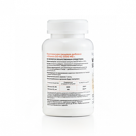 - Сочетание витаминов D и K2 в одной капсуле — это современный подход к профилактике дефицита и забота о вашем организме на всех уровнях. Поддержите естественные процессы усвоения кальция и сохраните здоровье на долгие годы!