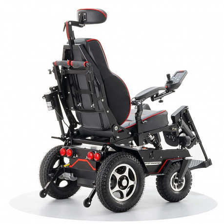Кресло-коляска Caterwil Ultra пятой версии имеет электрорегулировку каждой подножки и электрорегулировку спинки. Доступ к данным функциям осуществляется с пульта коляски. Также на пульте управления можно активировать функцию “Кровать”, когда при нажатии кнопок или джойстика одновременно поднимаются подножки и отклоняется спинка кресла. Таким образом, пользователь легким движением руки может принять горизонтальное положение.
